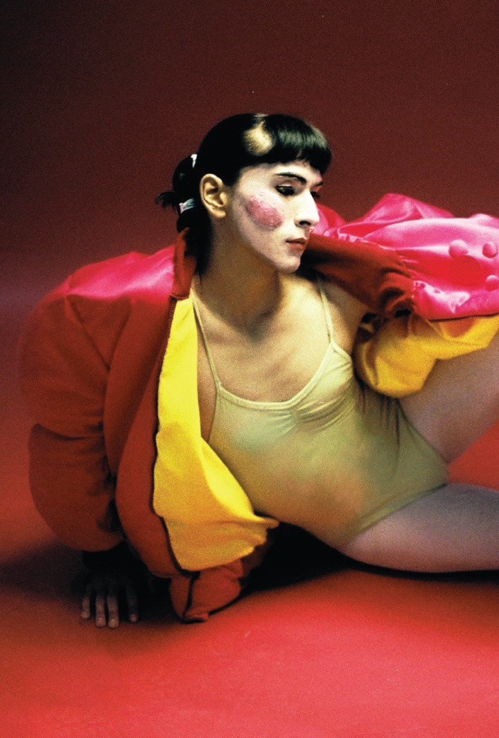 The TWISTED MA-1 CHERRY JACKET is a subversive take on the classic flight bomber—its silhouette swollen and disfigured, yet familiar. Rendered in a high-gloss cherry satin with heavy ribbed finishes, the piece mutates a militarized archetype into something indulgent and strangely soft. The exaggerated volume exaggerates the body, producing a puffed and performative figure. The interior is lined in electric yellow , echoing the idea of dual skins—one for function, one for display. Its unsettling elegance lies in its refusal to settle: it’s a uniform for the disoriented, theatrical and precise.